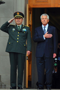 चिनियाँ रक्षामन्त्री छाङ्ग वान छ्युनले 19 तारिखका दिन वाशिन्टनमा अमेरिकी रक्षा मन्त्री छुक हागेलसँग भेटवार्ता गर्नुभएको छ। दुवै पक्षले दुई मुलुकको सम्बन्ध, सैन्य सम्बन्ध, द्बिपक्षीय मामिला, क्षेत्रीय मामिलाआदि अनेकन विषयबारे छलफल गरेर धेरै मतैक्यता प्राप्त गर्नुभएको छ। अब यस विषयसम्बन्धी थप विवरण सुन्नुहोस्—