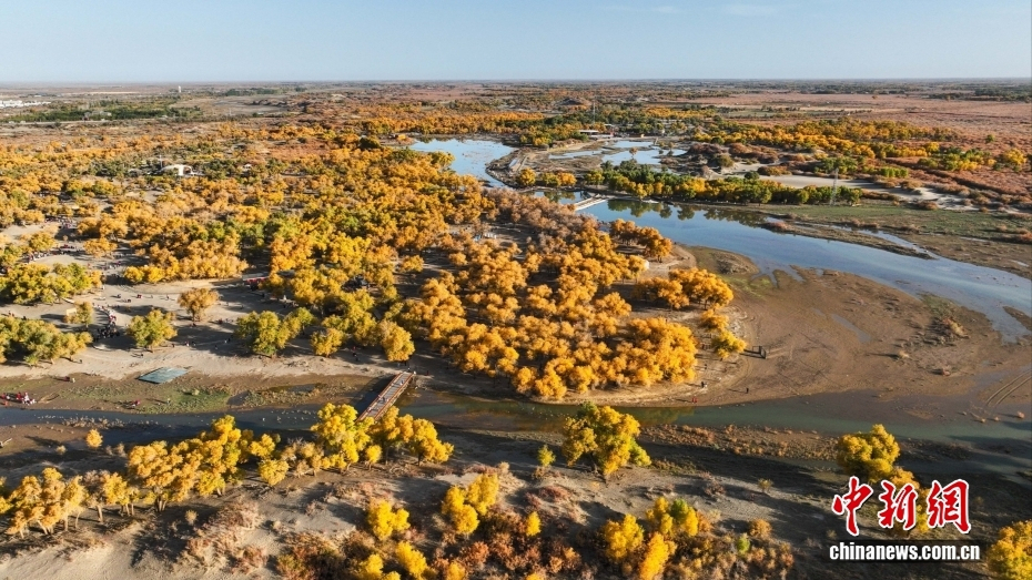सुनौलो वन र निलो आकाशले बनाएको शरद ऋतुको चित्र