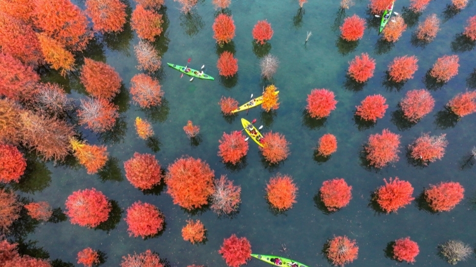 चच्याङमा रेडवुड वनको रङ्गीन दृश्य